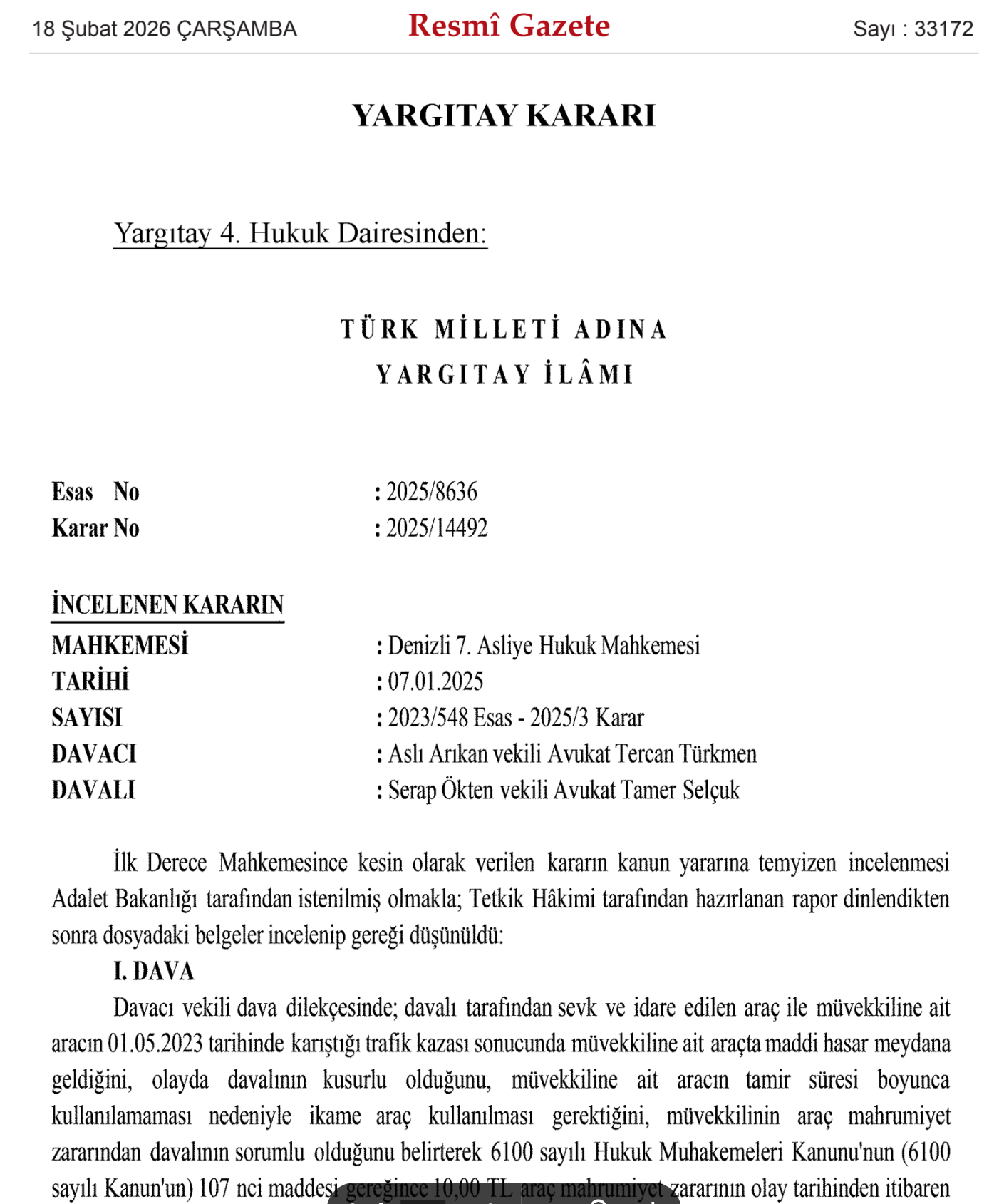 Bir trafik kazasında kaza tespit tutanağı ve bilirkişi raporuna göre kazanın meydana gelmesinde bir kişinin kural ihlali yapmadığı anlaşılırsa kaza sırasında geçerli bir sürücü belgesinin olmaması idari yaptırım gerektiren bir hal olup sürüş kusuru olarak nitelendirilemez. Kazadan dolayı uğradığı zararın tazminin talep edebilir.